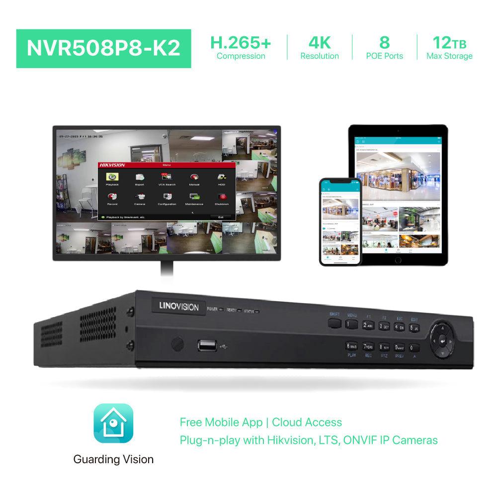 【4K 8CH ULTRA HD NVR WITH 2TB HDD】This NVR recorder features with 4K Ultra HD live viewing and recording, H.265+ video compression and most powerful functions, like 8 cameras’ synchronous playback, various video analytic detections and smart events search. It provides 8 independent PoE interfaces, transmission distance up to 900ft from POE cameras. It supports two hard drives with maximum storage capacity of 12TB (one 2TB HDD is pre-installed).